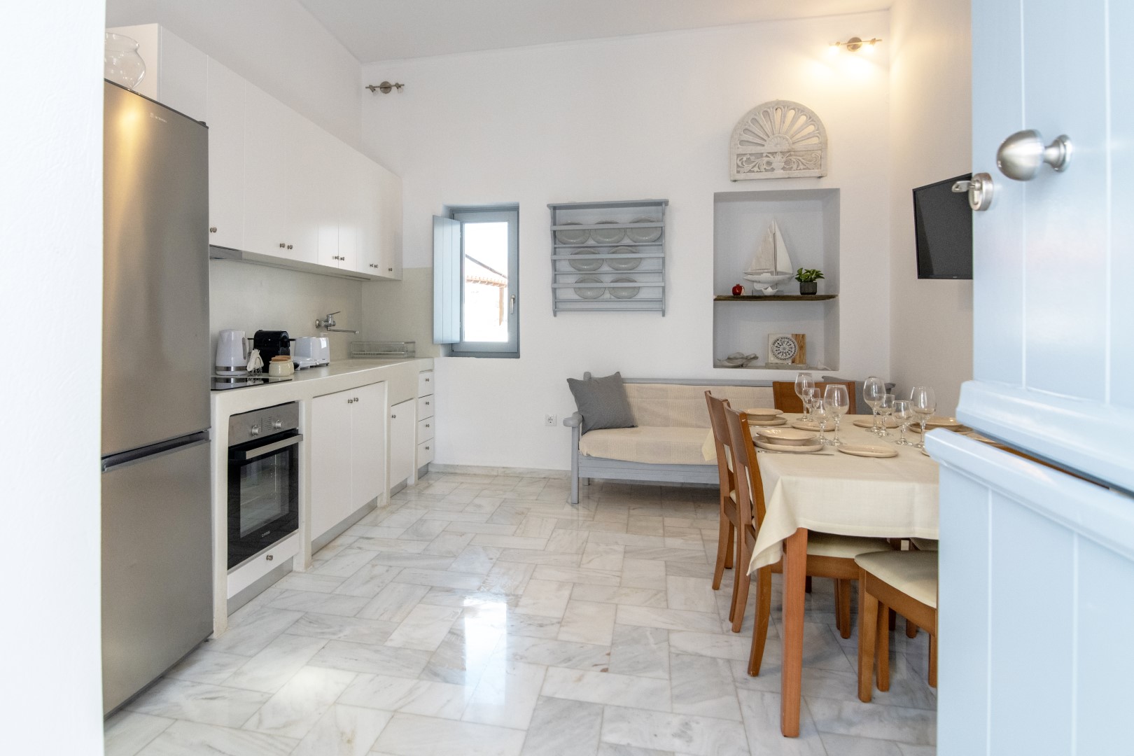 Το σπίτι ανακαινίστηκε πλήρως το 2022 και το διαχειρίζεται απευθείας ο νεαρός Έλληνας ιδιοκτήτης, μόνιμος κάτοικος του νησιού. Οι λευκές προσόψεις του ταιριάζουν απόλυτα με το εκθαμβωτικό λευκό του νησιού. Εσωτερικά δάπεδα με ελληνικό λευκό μάρμαρο, άνετα ευρύχωρα δωμάτια των δωματίων του, φωτεινοί και πεντακάθαροι χώροι υπόσχονται στον επισκέπτη μια χαλαρωτική εμπειρία διαμονής.